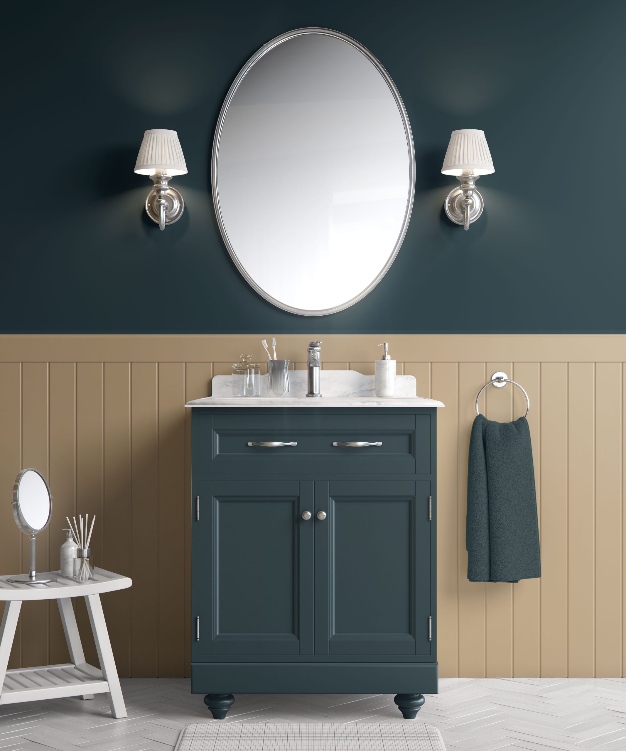 Deep Teal Serenity-the best peel & stick wallpaper for bathroom