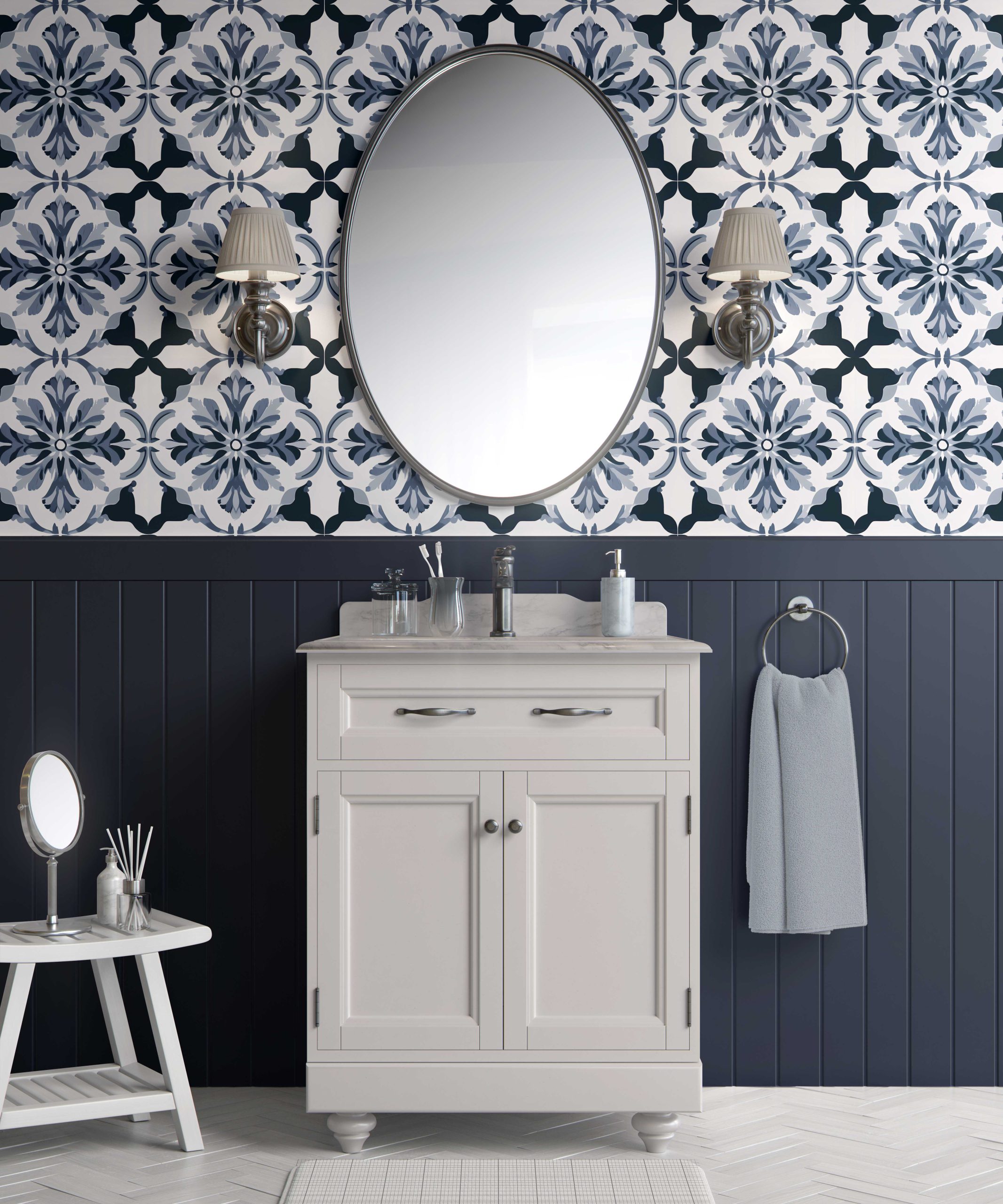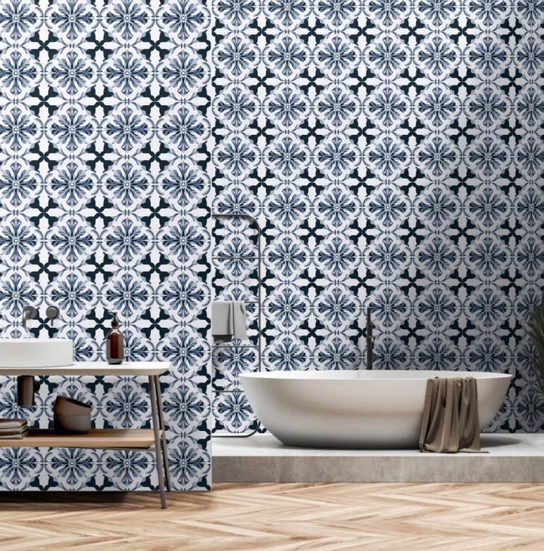 Bathroom-Cabinet-Indigo Floral Elegance- French Country Peel & Stick Wallpaper