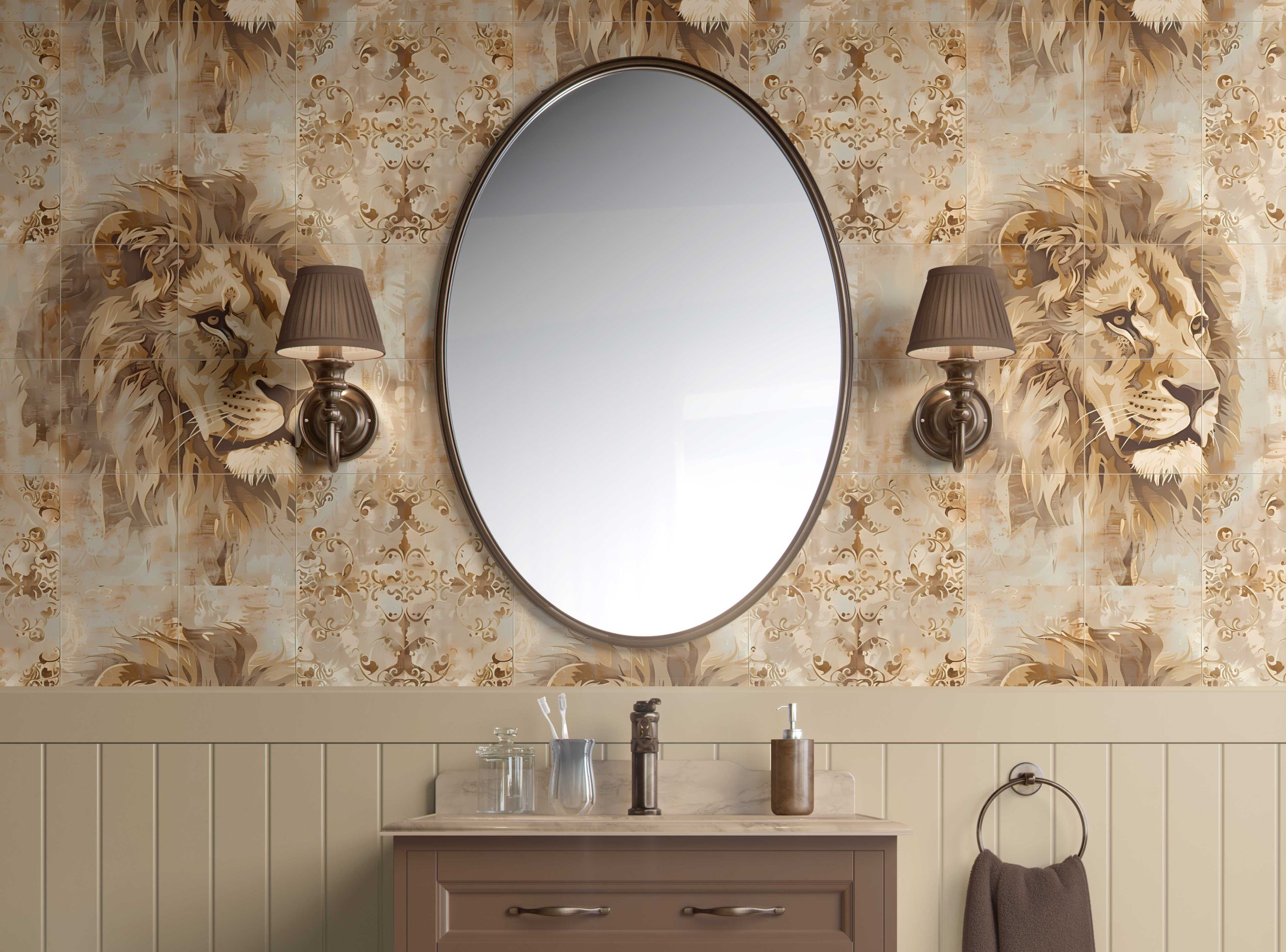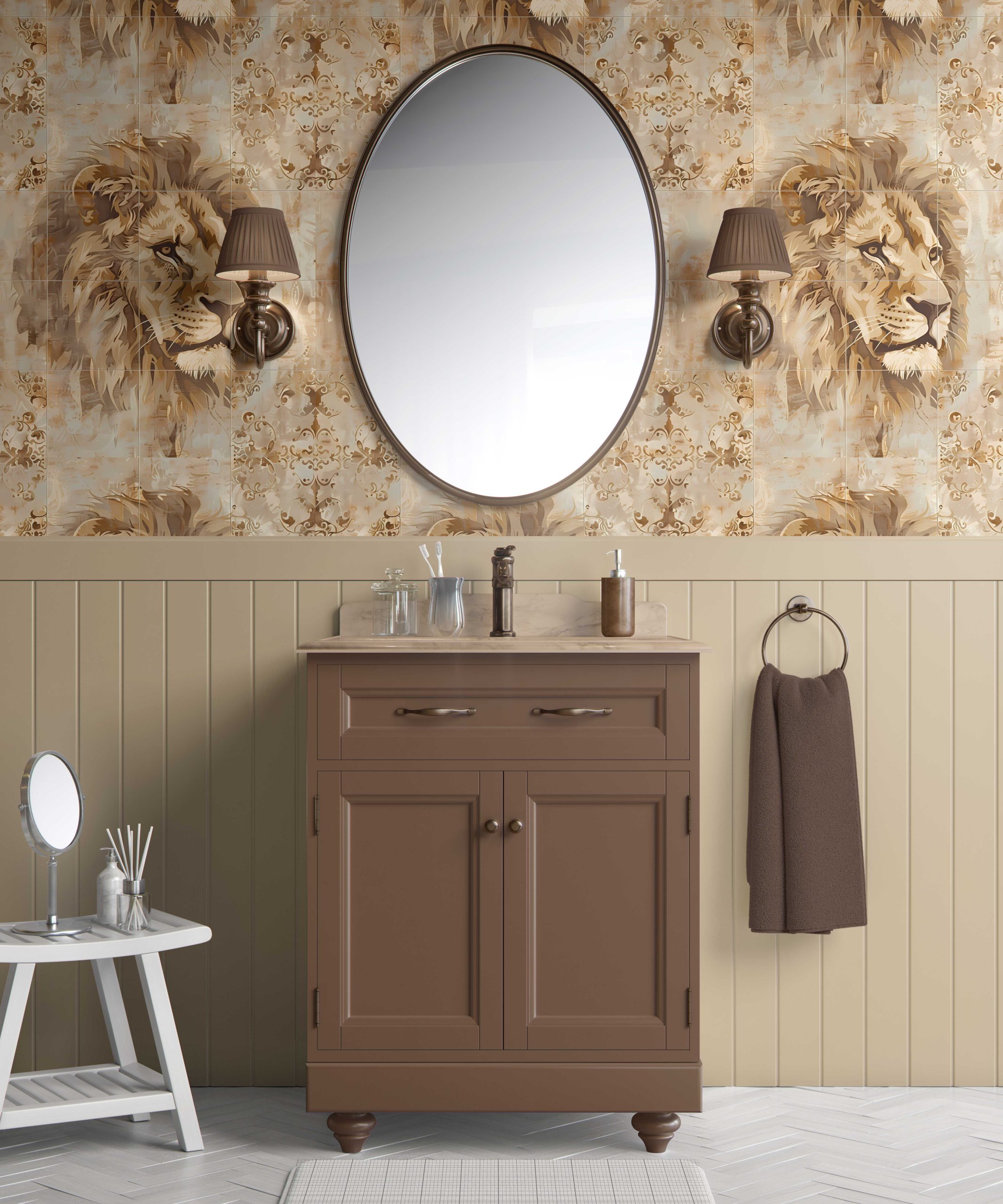 Bathroom-Cabinet-Wallpaper-Noble Lion- peel & stick wallpaper traditional